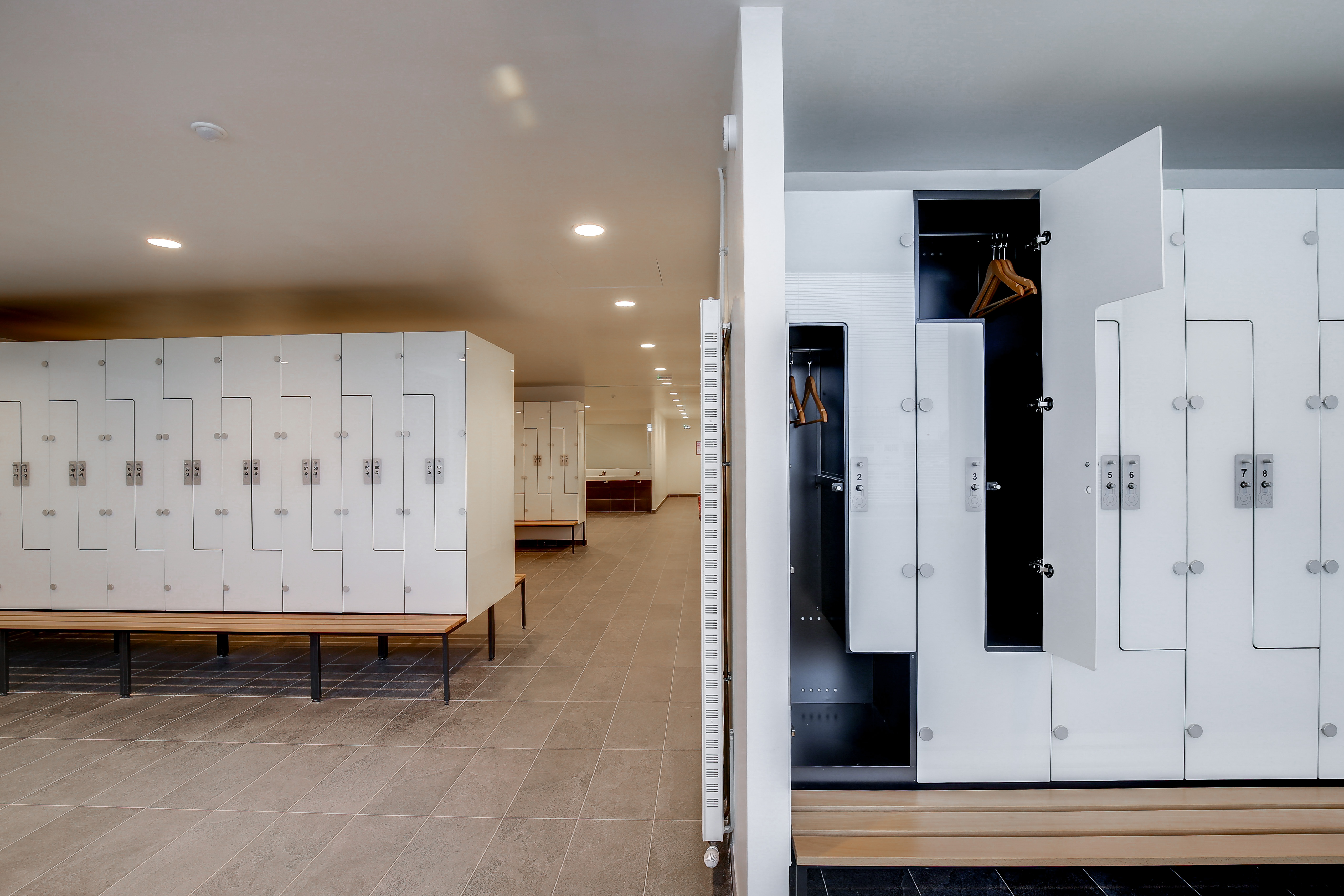 - Deux espaces vestiaires avec douches individuelles et casiers-vestiaires.